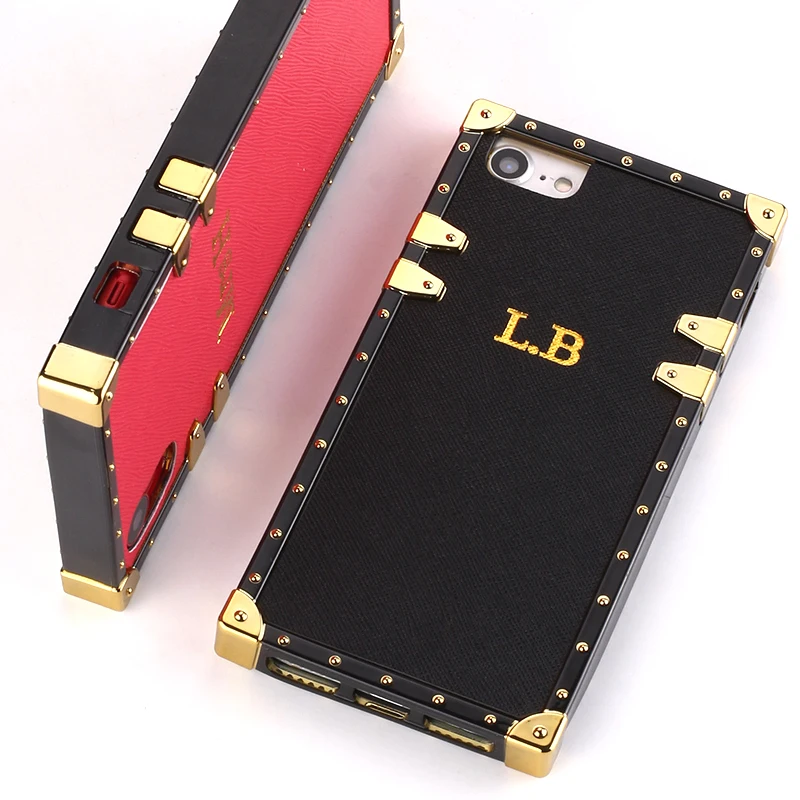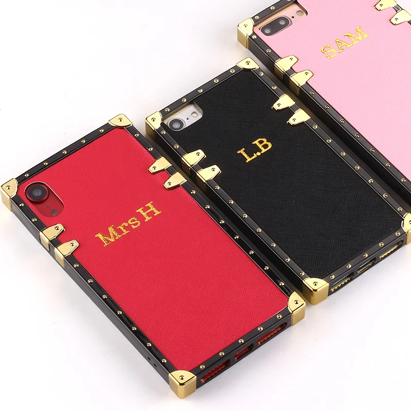 Best Chance of Leather Trunk Case Stamping Emboss Gold Personalized Custom Name Phone Case For iPhone 11 Pro 6S XS