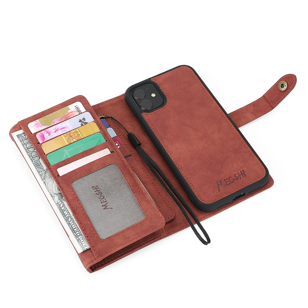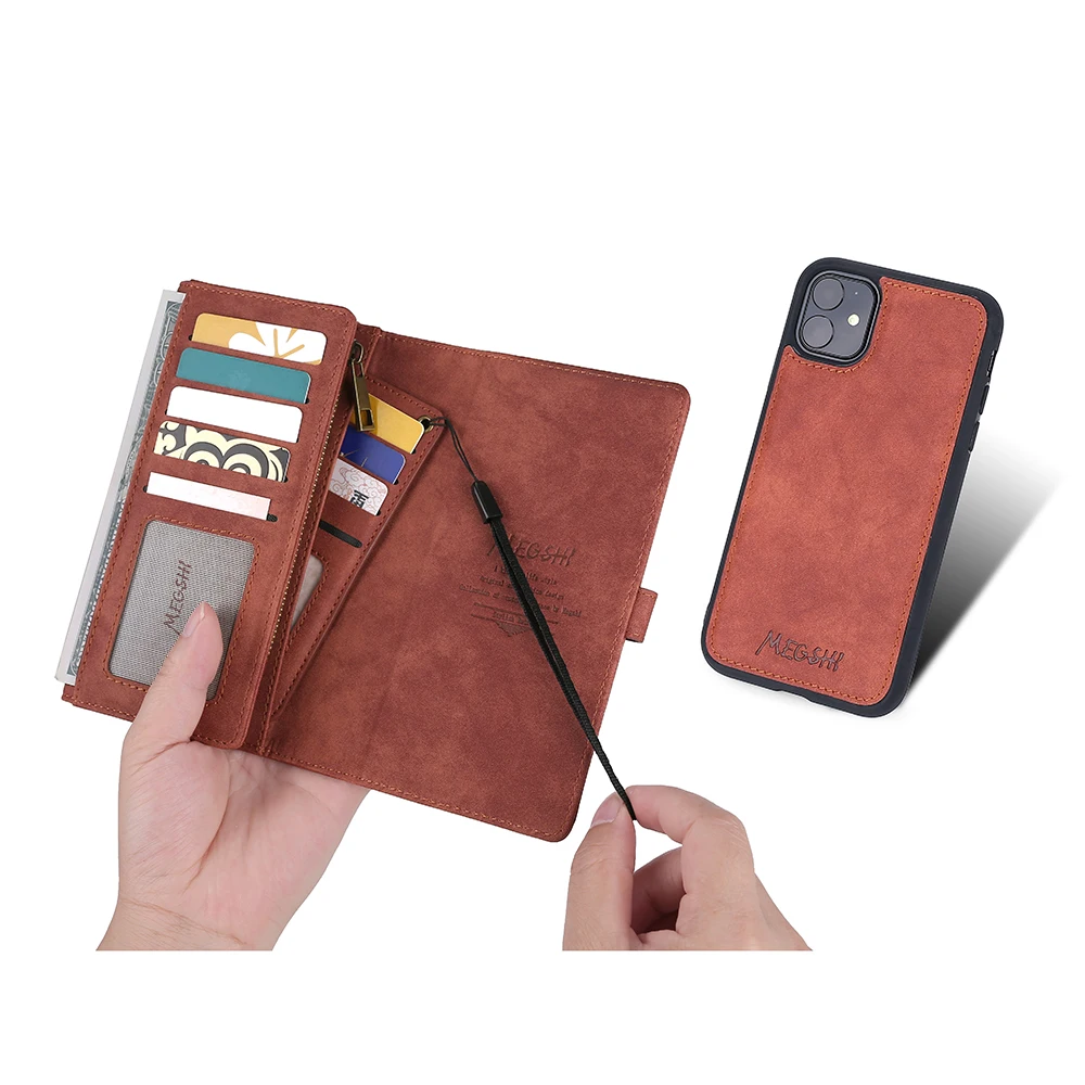 Cheap Price of Megshi Leather Wallet Case for iPhone 11 Pro 8 7P Case Soft Silicone edge Shockproof Cover Coque fo
